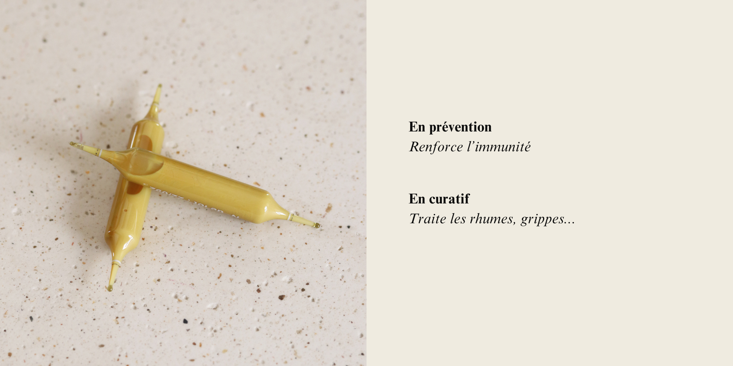 A vous de choisir la forme galénique qui vous convient le mieux, car toutes contiennent la même concentration en principes actifs ! 1 dose = 1 ampoule de solution aqueuse = 1 monodose de solution hydralcoolique = 2 gélules = 30 gouttes (compte-gouttes).