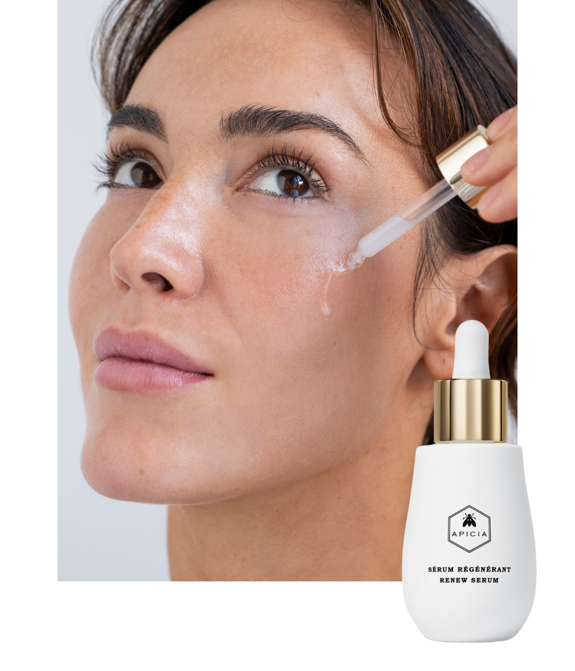 En travaillant sur la peau (hydratation, fermeté) et de l’intérieur (équilibre inflammatoire et micronutrition), le Protocole Anti-Âge In & Out Apicia aide la peau à retrouver sa densité, son éclat et son confort.