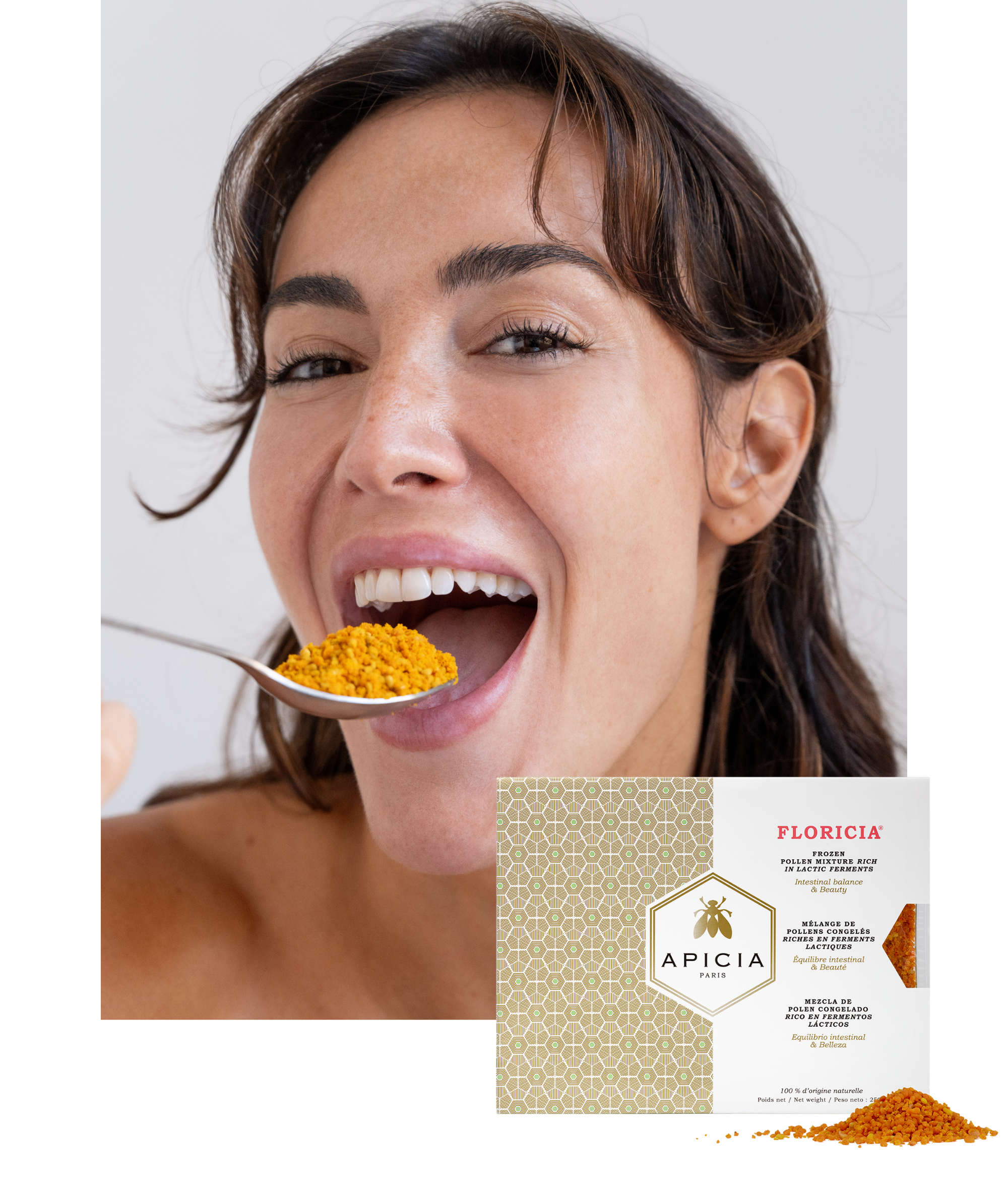Le Pollen Frais Floricia rééquilibre le microbiote et réduit l’inflammation interne, pour un éclat durable.